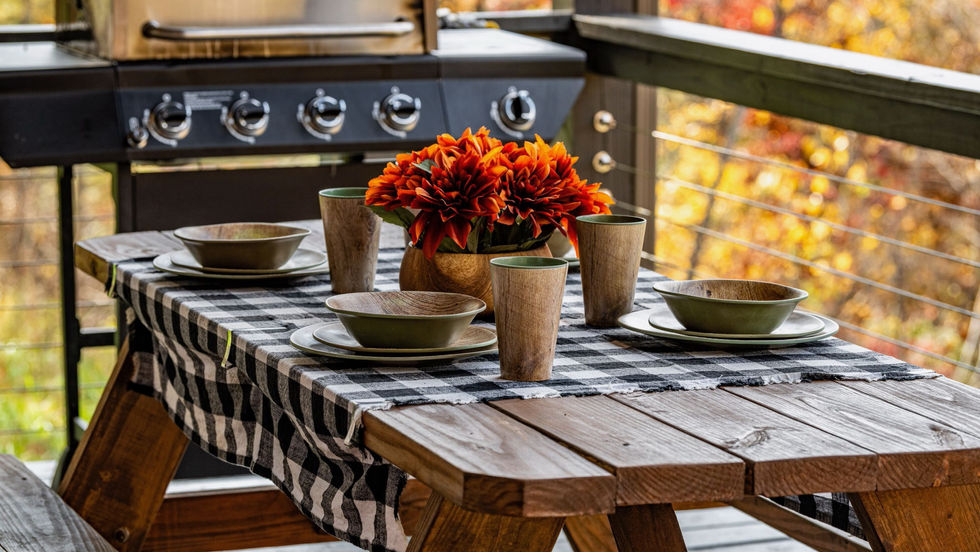 On the 80 feet of upper and lower deck space, you'll find a wood-burning fireplace with seating, a viewing bench, an inviting and luxurious hot tub, a grill to cook up a fantastic BBQ, and a picnic table where you can enjoy your delicious dinner.
